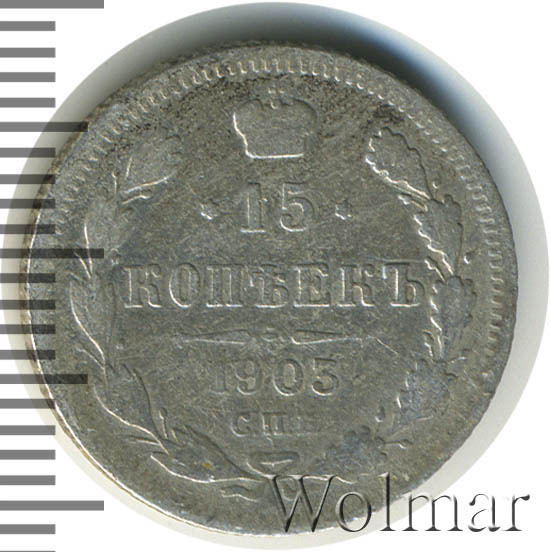 Реверс монеты 15 копеек 1903 года СПБ-АР