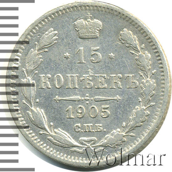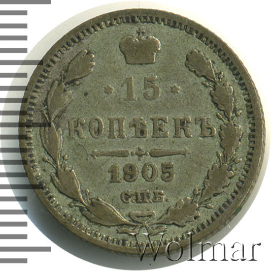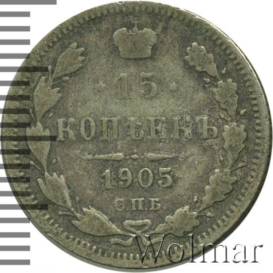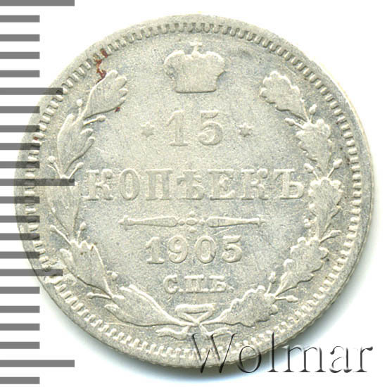 Реверс монеты 15 копеек 1905 года СПБ-АР