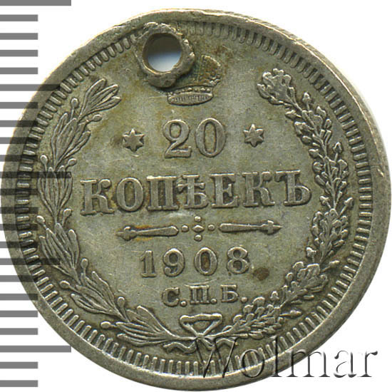 '20 копеек 1908 СПБ-ЭБ '