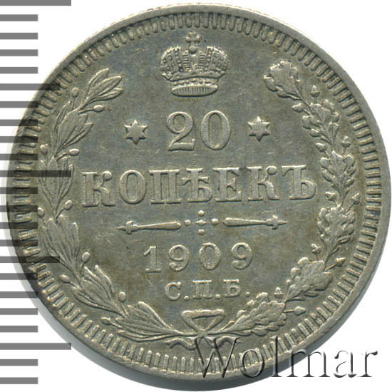 '20 копеек 1909 СПБ-ЭБ '