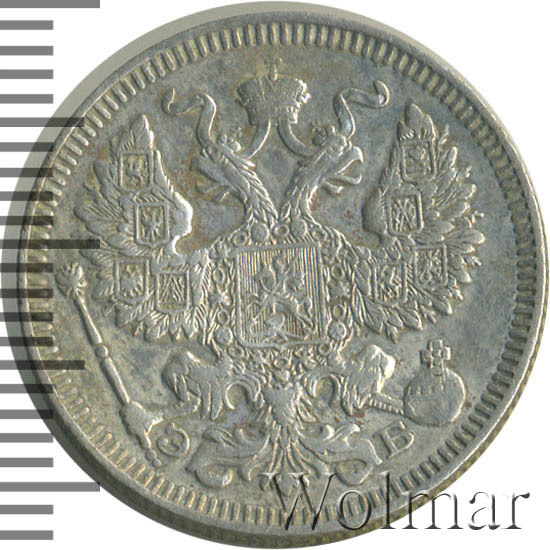 20 копеек 1901-1917 годов чеканились на Санкт-Петербургском монетном дворе из серебра 48 золотниковой (500 метрической) пробы весом 3.6 г.