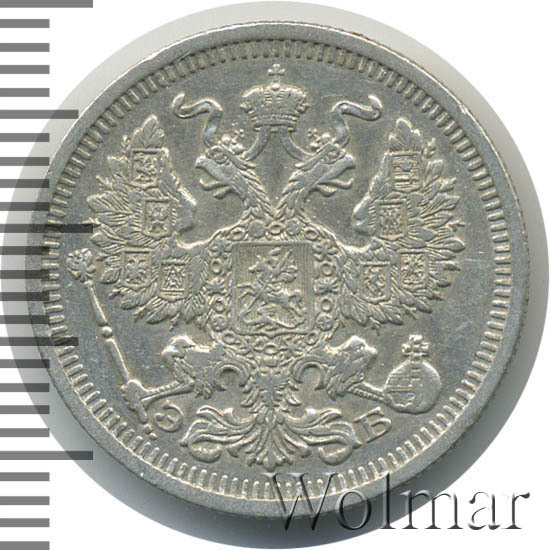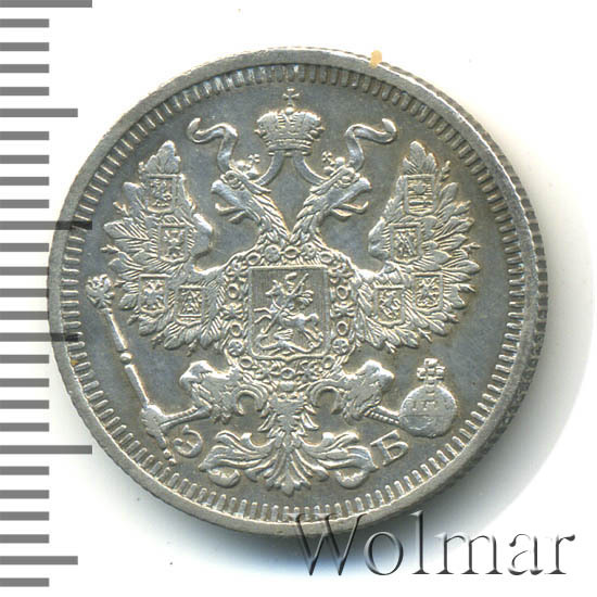 20 копеек. Патина. Штемпельный блескбуквы СПБ ЭБ Аукцион: Wolmar Standart Состояние: XF+ | 18.03.2026 |