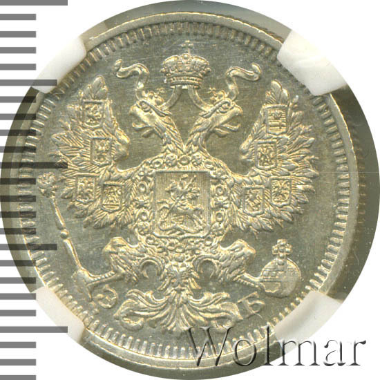 20 копеек. Русский слаббуквы СПБ ЭБ Аукцион: Wolmar Standart Состояние: MS63 | 17.09.2025 |