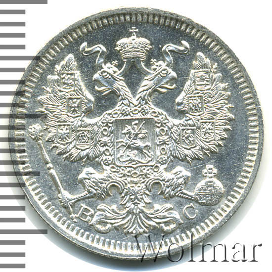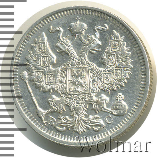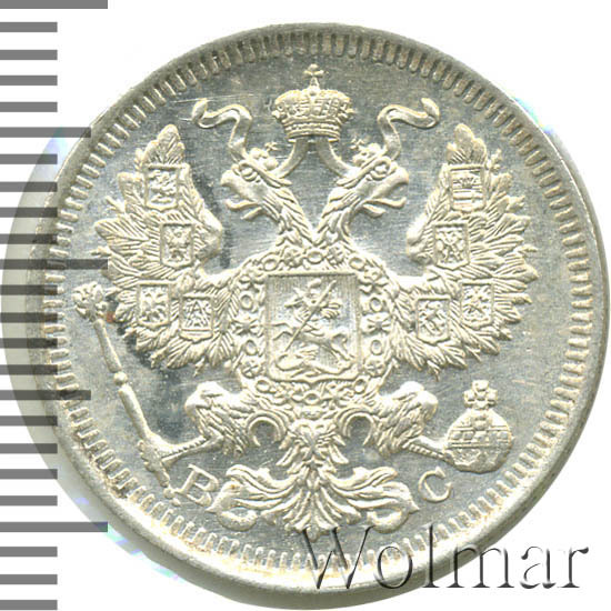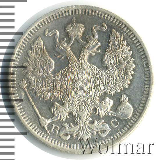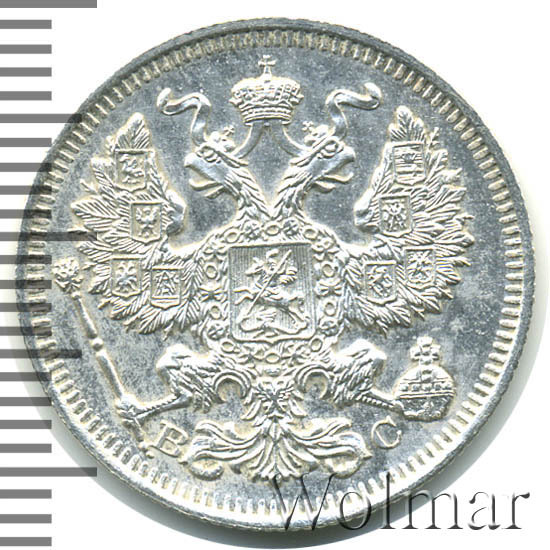 20 копеек. Штемпельный блеск. Легкая патинабуквы СПБ ВС Аукцион: Wolmar Standart Состояние: XF | 22.10.2025 |