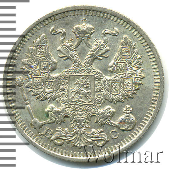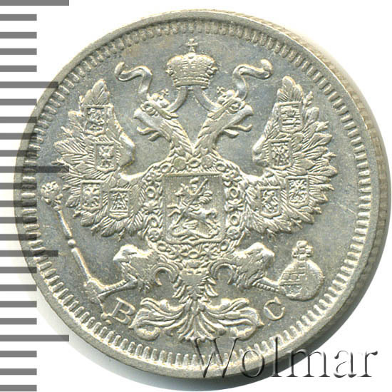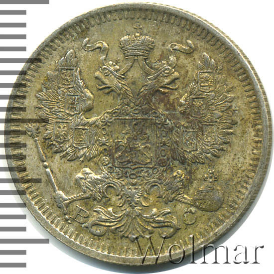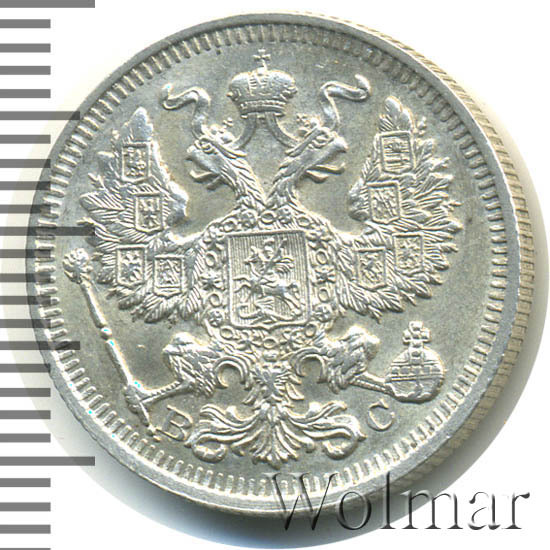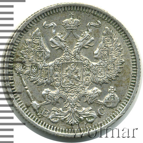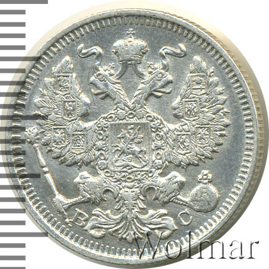 20 копеек. Штемпельный блеск. Легкая патинабуквы СПБ ВС Аукцион: Wolmar Standart Состояние: XF | 15.04.2026 |
