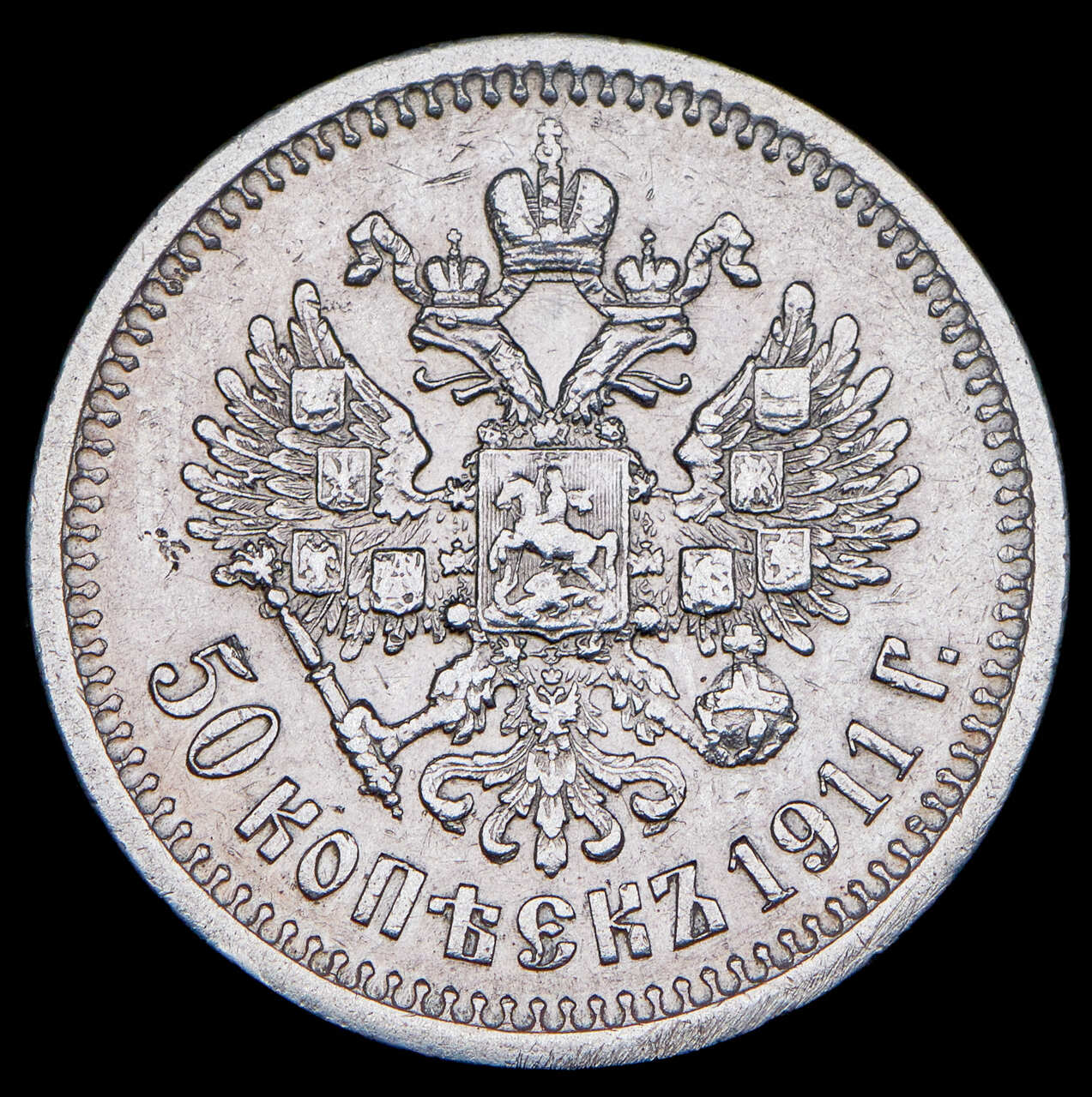 Аверс монеты 50 копеек 1911 года ЭБ