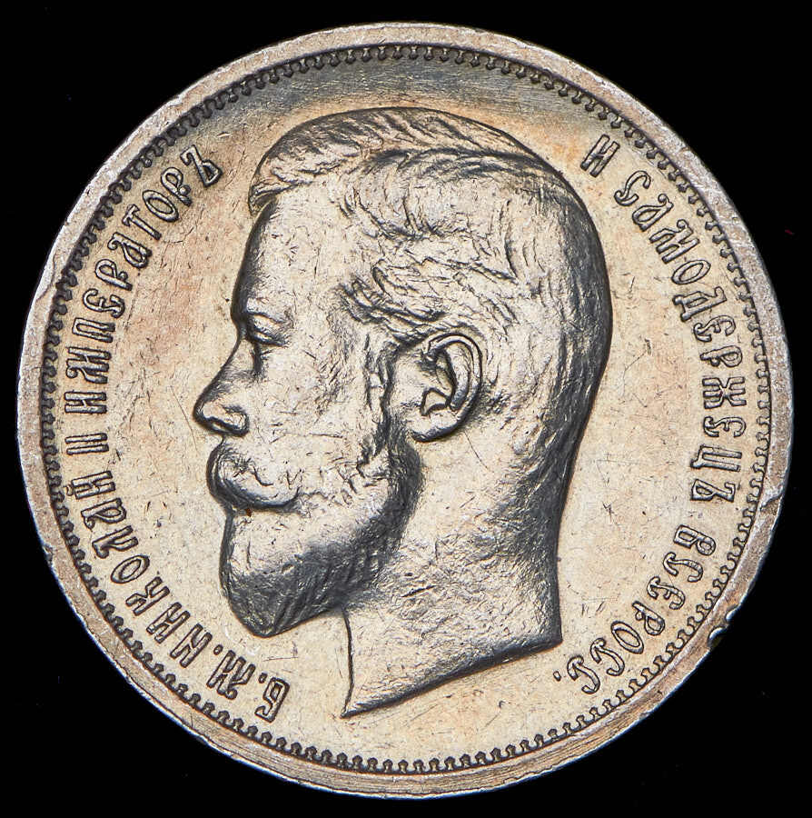 В центре профильный портрет влево императора Николая II. Слева надпись «Б.М. НИКОЛАЙ II ИМПЕРАТОР», справа - «И САМОДЕРЖЕЦ ВСЕРОСС.». По окружности канта имеются рельефные элементы, выполненные в виде зубцов.
