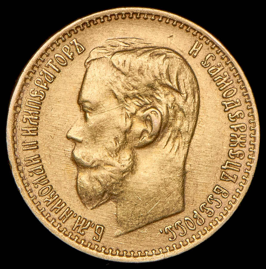 Выше представлен золотой пятирублёвик 1899 года с портретом последнего императора Николая II. Весила монетка 4,3 грамма, гурт украшал узор из прямоугольных линий с инициалами минцмейстера или начальника монетного двора. Известны очень редкие 5 рублей 1899 с гладким гуртом. Монеты чеканились с подписью двух чиновников: Феликса Залемана - буквы Ф.З (на фото выше) и Эликуна Бабаянца - буквы Э.Б соответственно. Цена 5 рублей 1899 года Ф.З и Э.Б примерно одинаковая, Э.Б в идеальном состоянии стоят чуть-чудь дороже, но в общем монета считается довольно распространённой, так как общий тираж составил около 20,5 миллионов экземпляров. Более подробно ознакомиться со стоимостью 5 рублей 1899 года, Вы можете во вкладке "стоимость монет", так же Вы сможете принять непосредственное участие в текущих нумизматических интернет - аукционах, во вкладке "активные лоты".