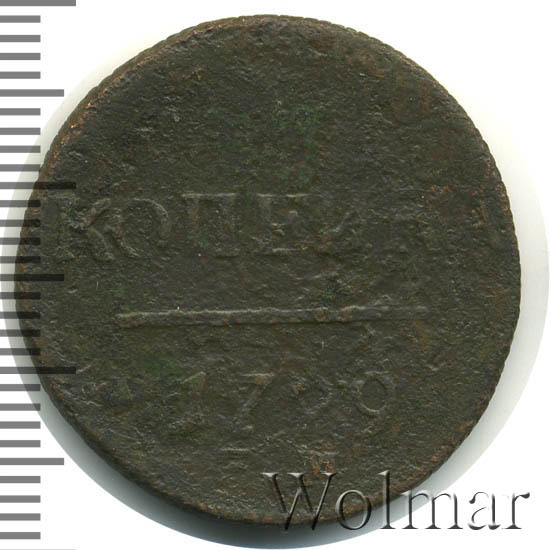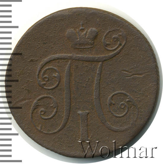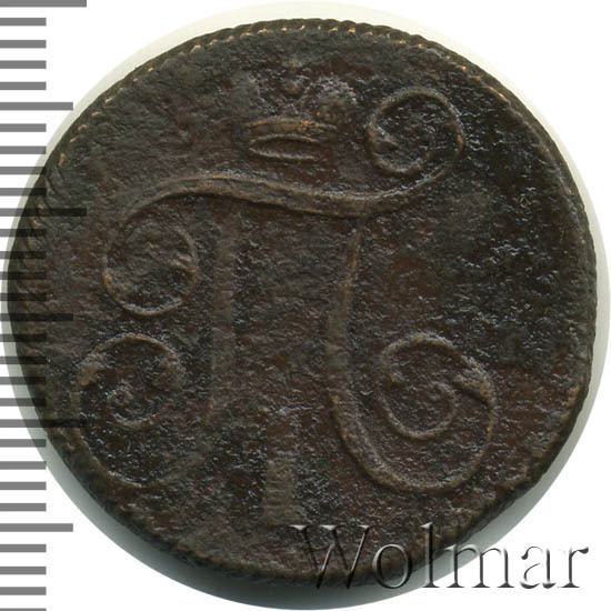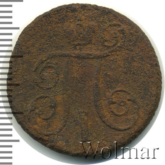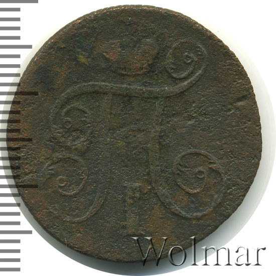 Копейка 1799 года чеканилась из меди весом чуть больше 10 грамм. Монеты императора Павла I изготавливались на Екатеринбургском (ЕМ), Аннинском (AM и без букв) и Сузунском (КМ) монетных дворах на 16 рублей из пуда меди (16,38 кг). Выше представлена екатеринбургская копейка 1799 ЕМ не редкая находка поисковиков в "земляном сохране" не представляющая большого коллекционного интереса. А вот Сузунская копейка 1799 по каталогу Узденкова отмечена как редкая, её предполагаемый тираж всего 200 тысяч, а это не много для монеты с 200-сот летней историей. Гурт монеты украшает шнуровой узор. Более подробно ознакомиться с ценой 1 копейки 1799 года, Вы можете во вкладке "стоимость монет", так же Вы сможете принять участие в текущих нумизматических интернет - аукционах, во вкладке "активные лоты". Лоты копеек Павла I соседних лет можно посмотреть во вкладке "похожие монеты".