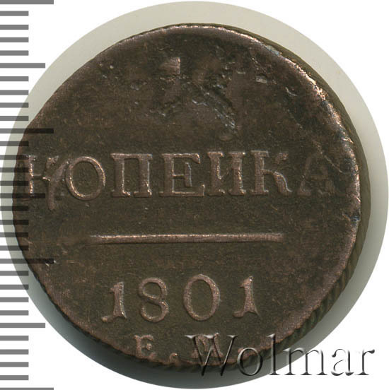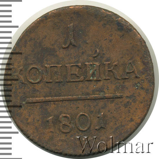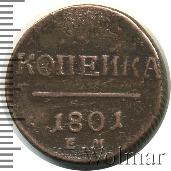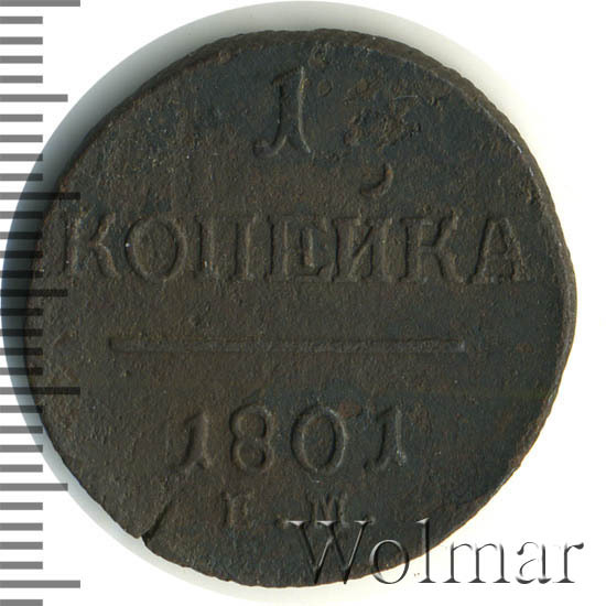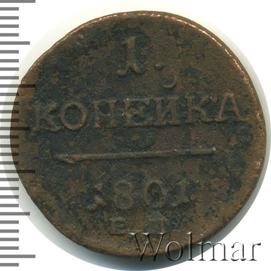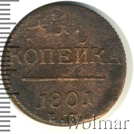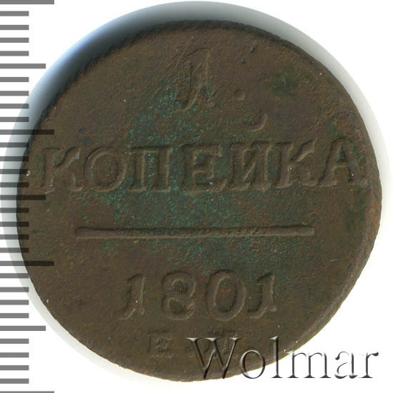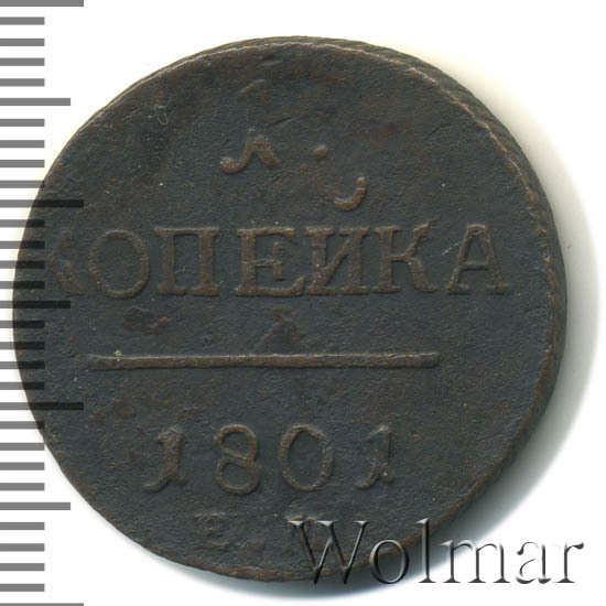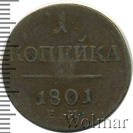 Реверс монеты 1 копейка 1801 года ЕМ