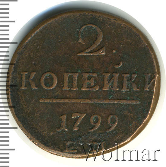Цена на монету 2 копейки 1799 года ЕМ на сегодня, 19 декабря 2025 года