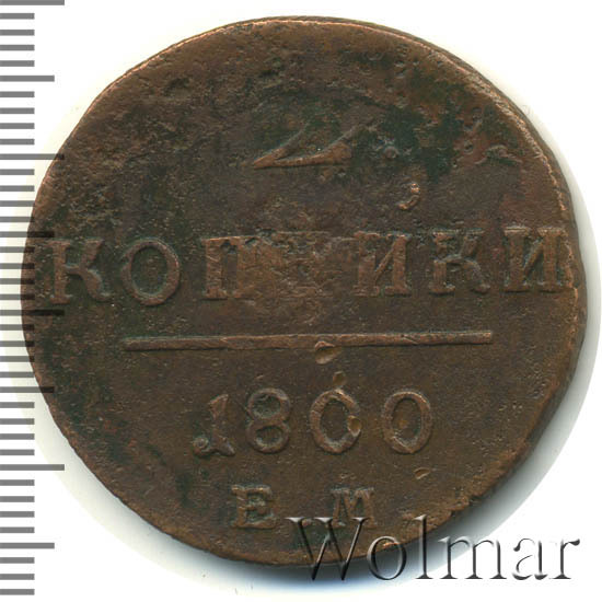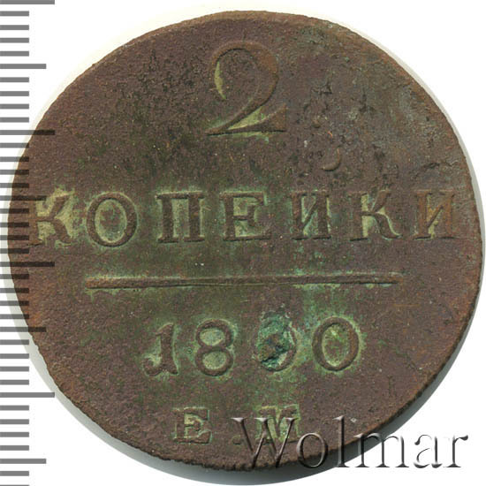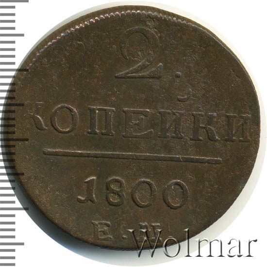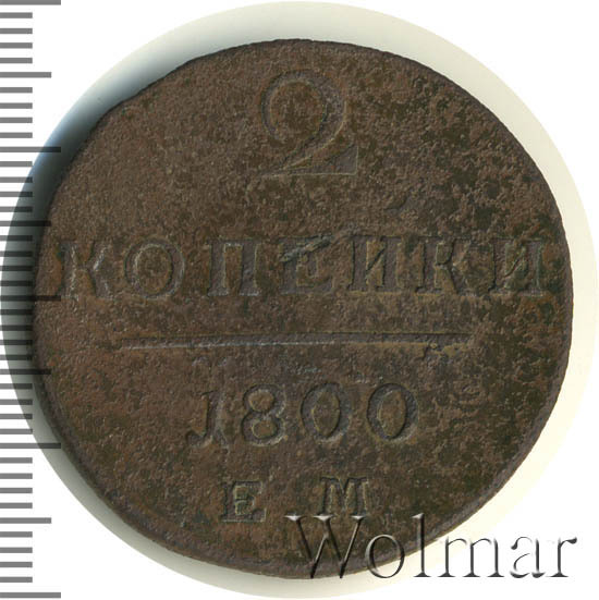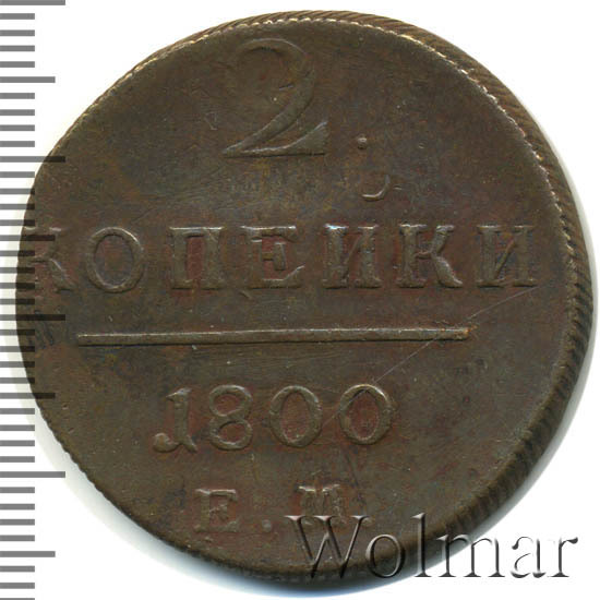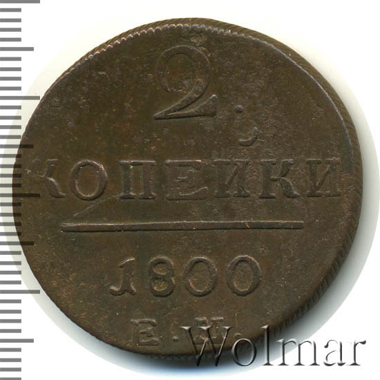 Номинал в 2 копейки, в 1800 году, чеканили также и на Сузунском монетном дворе , эта монетка рассматривается на отдельной странице каталога. Известна 2 коп. 1800 ЕМ с передатировкой даты (с 1799 г.), которая встречается намного реже обычной. Цена 2 коп. 1800 не высока в низкой сохранности, в отличном состоянии стоимость увеличивается в десятки раз. Подробно ознакомиться с ценой 2 копейки 1800 года ЕМ, Вы можете во вкладке «стоимость монет», а так же принять участие в текущих аукционах, пройдя по вкладке «активные лоты».