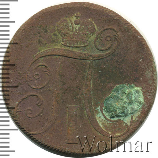 Медная двухкопеечная монета, относится к периоду правления императора Павла I, сына Екатерины Великой. Многим нумизматам нравиться минимализм монет это царя, по своему привлекательных и необычных для расцвета абсолютизма власти в 18 – 19 веках. Каждый монарх Европы, через свои монеты пытался донести своё величие, а у Павла даже крупное серебро не было украшено его портретом, а уж медные выглядят совсем аскетично, подобно личности этого правителя в истории России.