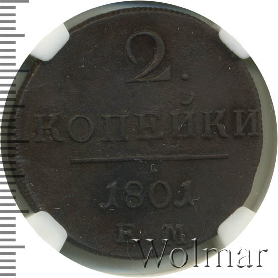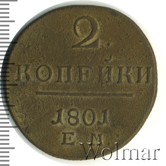 Нечастая монетка, вызовет интерес у коллекционеров в любом состоянии. В хорошем и отличном качестве (без следов обращения, царапин, забоин), цена 2-х копеек 1801 ЕМ, может возрасти в несколько десятков раз. Более подробно ознакомиться со стоимостью 2 копеек 1801 года ЕМ, Вы можете во вкладке «стоимость монет», а так же принять участие в текущих аукционах, пройдя по вкладке «активные лоты».