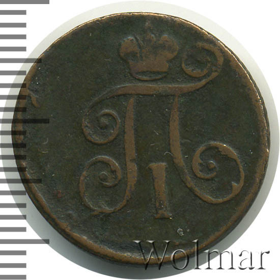 В центре надпись — слово «ДЕНЬГА». Над надписью — цифра «1.». Под надписью — прямая черта, под ней — дата выпуска монеты «1798». Под датой обозначение Екатеринбургского монетного двора — буквы "Е.М.".