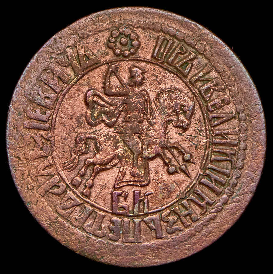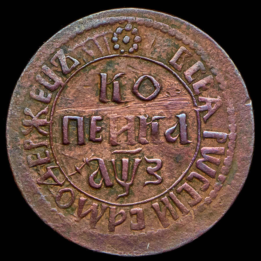 Аверс монеты 1 копейка 1707 года БК