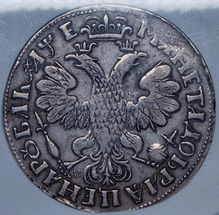 Реверс монеты 1 рубль 1705 года МД корона открытая