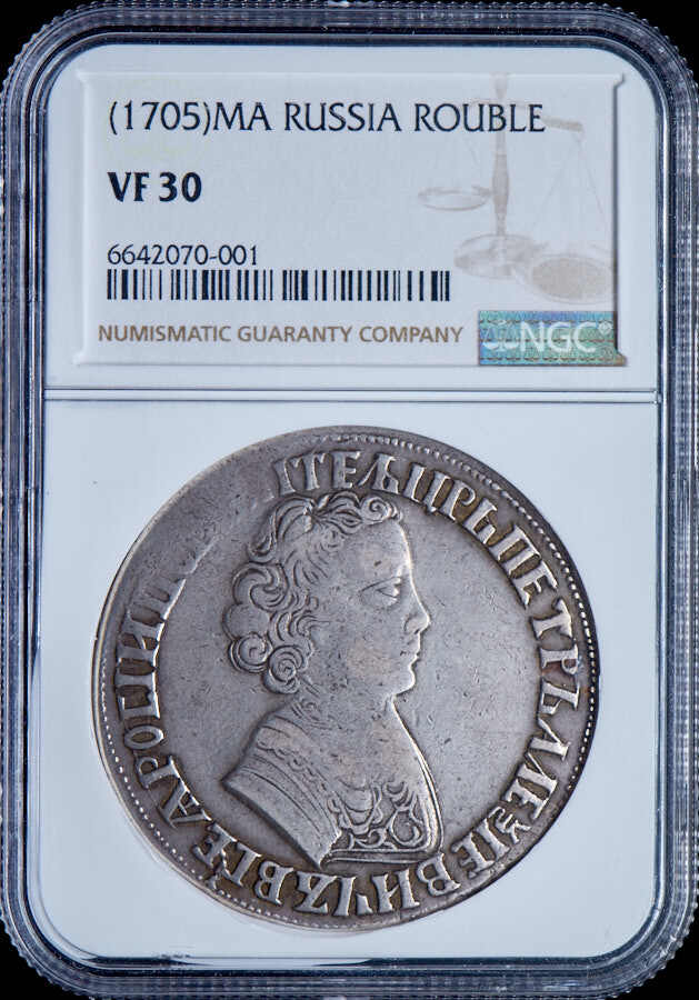 Рубль 1705 (в слабе)буквы МД Аукцион: AdaCoins Online Состояние: VF 30 | 30.10.2025 |