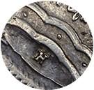 В центре профильный портрет вправо императора Петра I, увенчанный лавровым венком. В рукаве инициал гравёра - литера «Н» (Готфрид Гаупт). Вокруг портрета надпись: «ЦРЬ• ПЕТРЪ• АЛЕξIЕВИЧЪ• В: Р: П:». По окружности канта имеются рельефные элементы, выполненные в виде точек.
