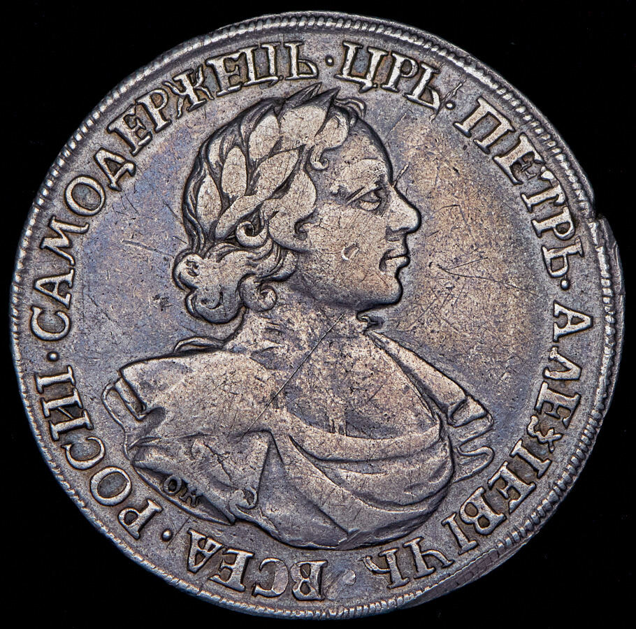 Аверс монеты 1 рубль 1718 года OK арабески на груди
