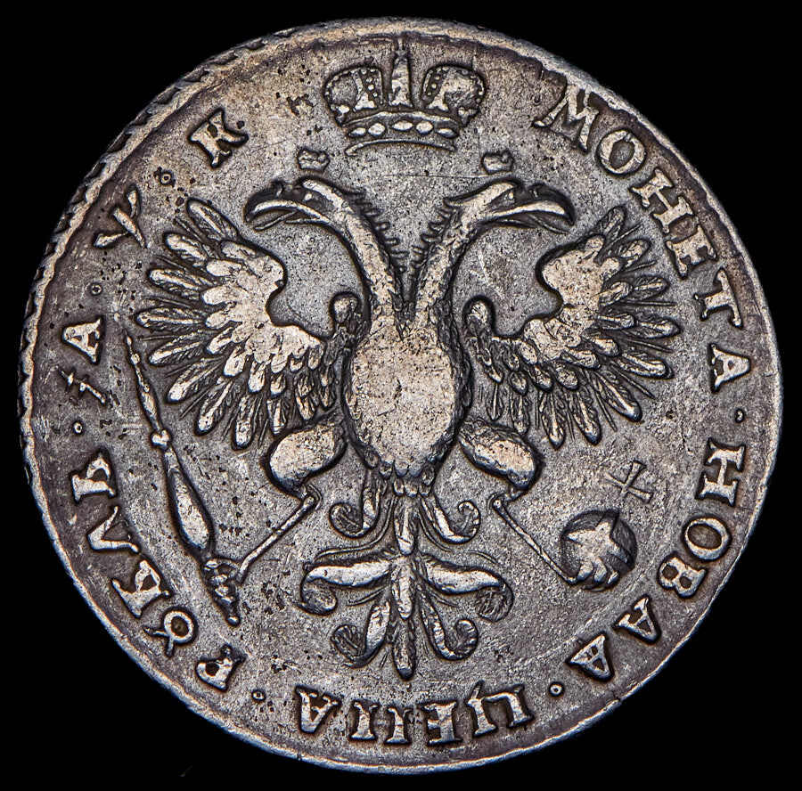 Аверс монеты 1 рубль 1720 года без букв, без пальмовой ветви