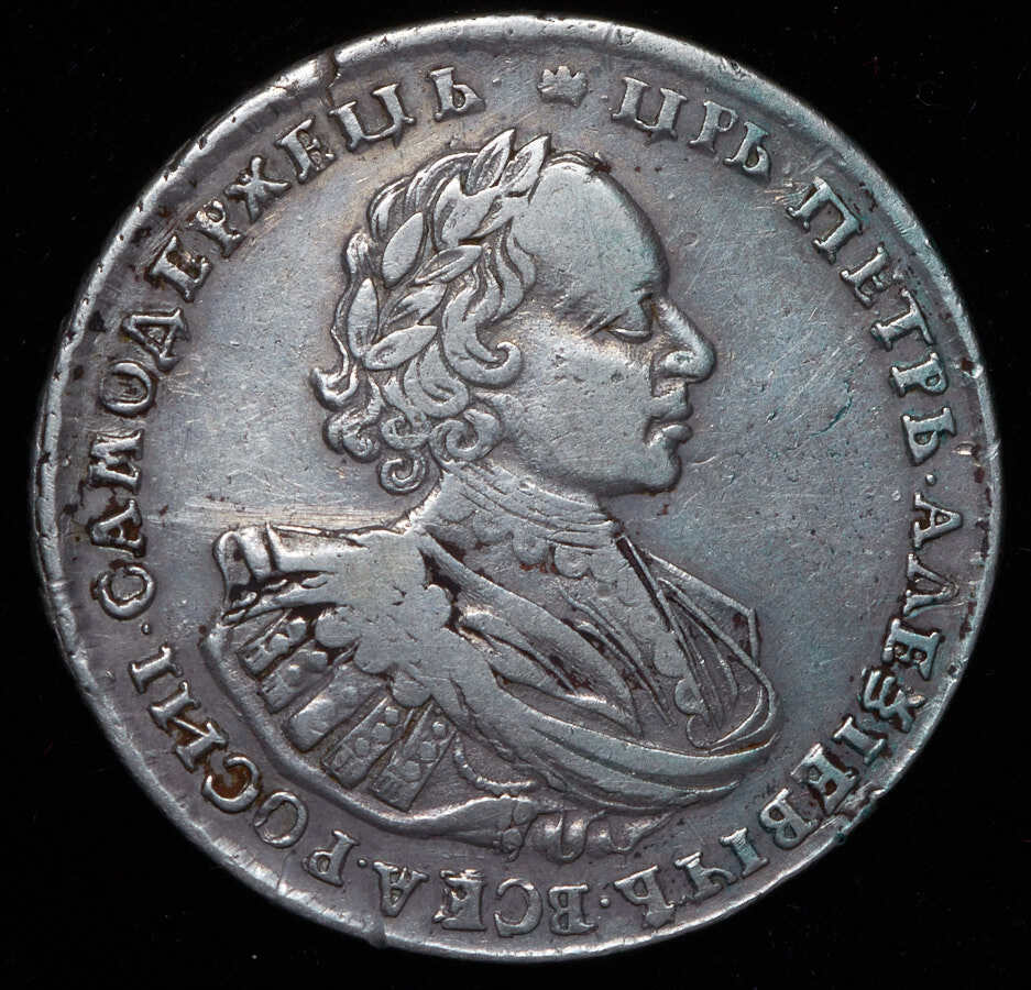 Аверс монеты 1 рубль 1721 года без букв, с пальмовой ветвью