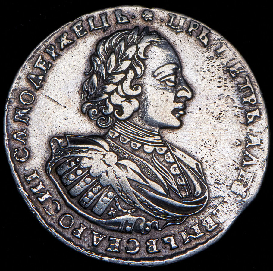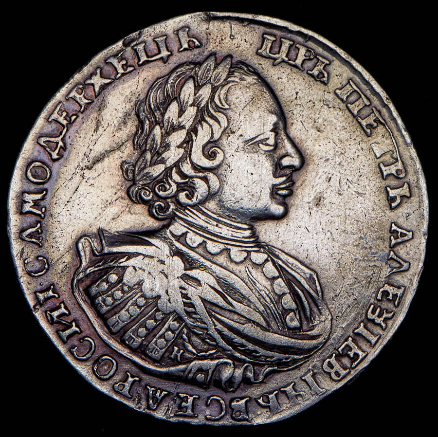 Аверс монеты 1 рубль 1721 года K