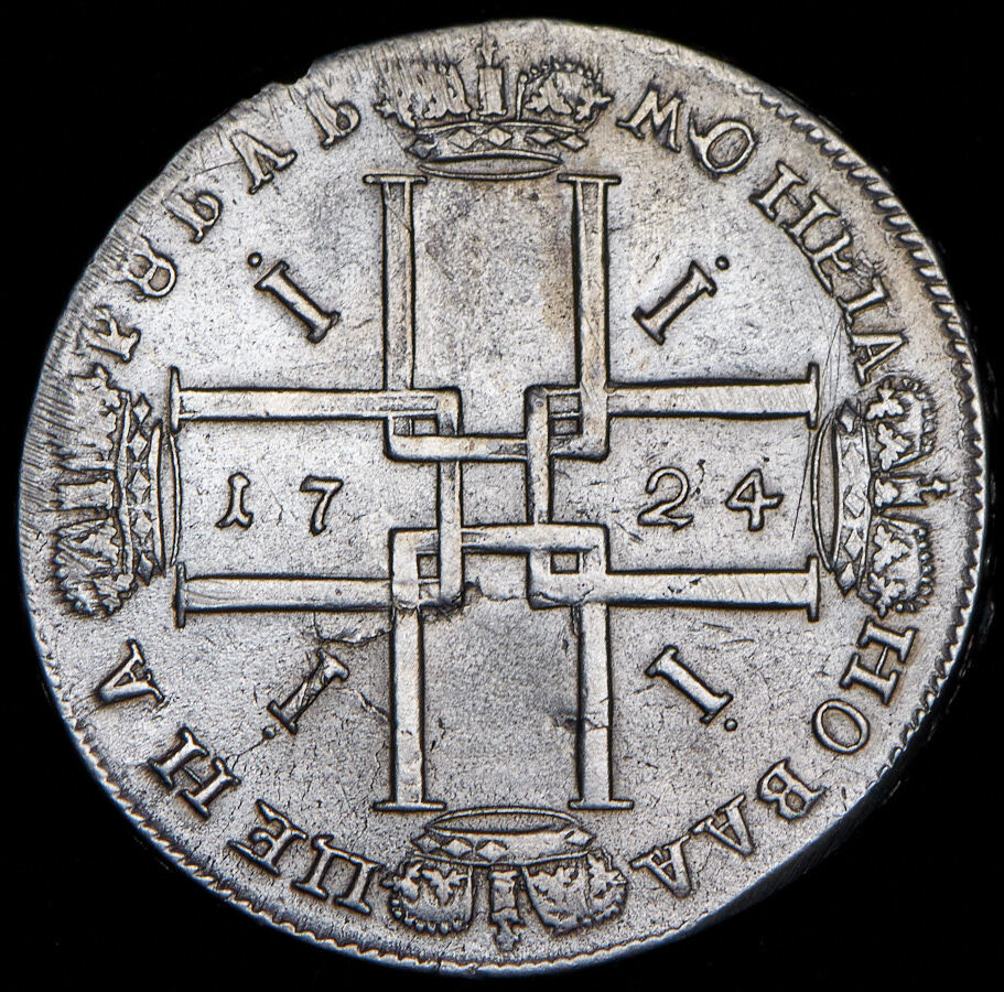 Реверс монеты 1 рубль 1724 года без букв