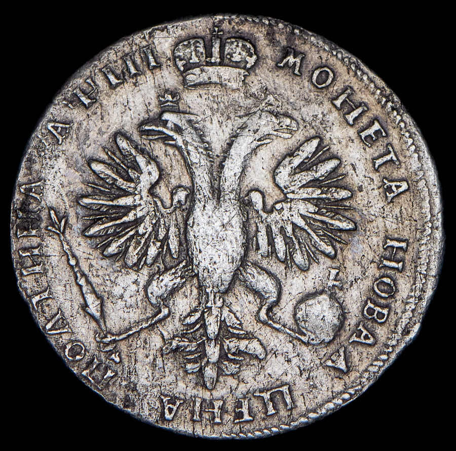 Аверс монеты полтина 1718 года OK-L без арабесок