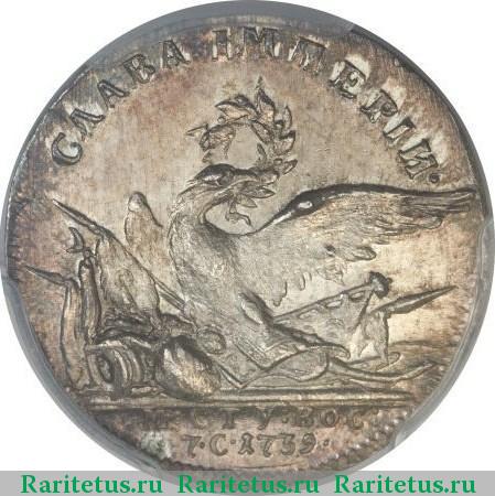 - Реверс: Картуш с надписью «ПОЛУШКА» и датой «1739».