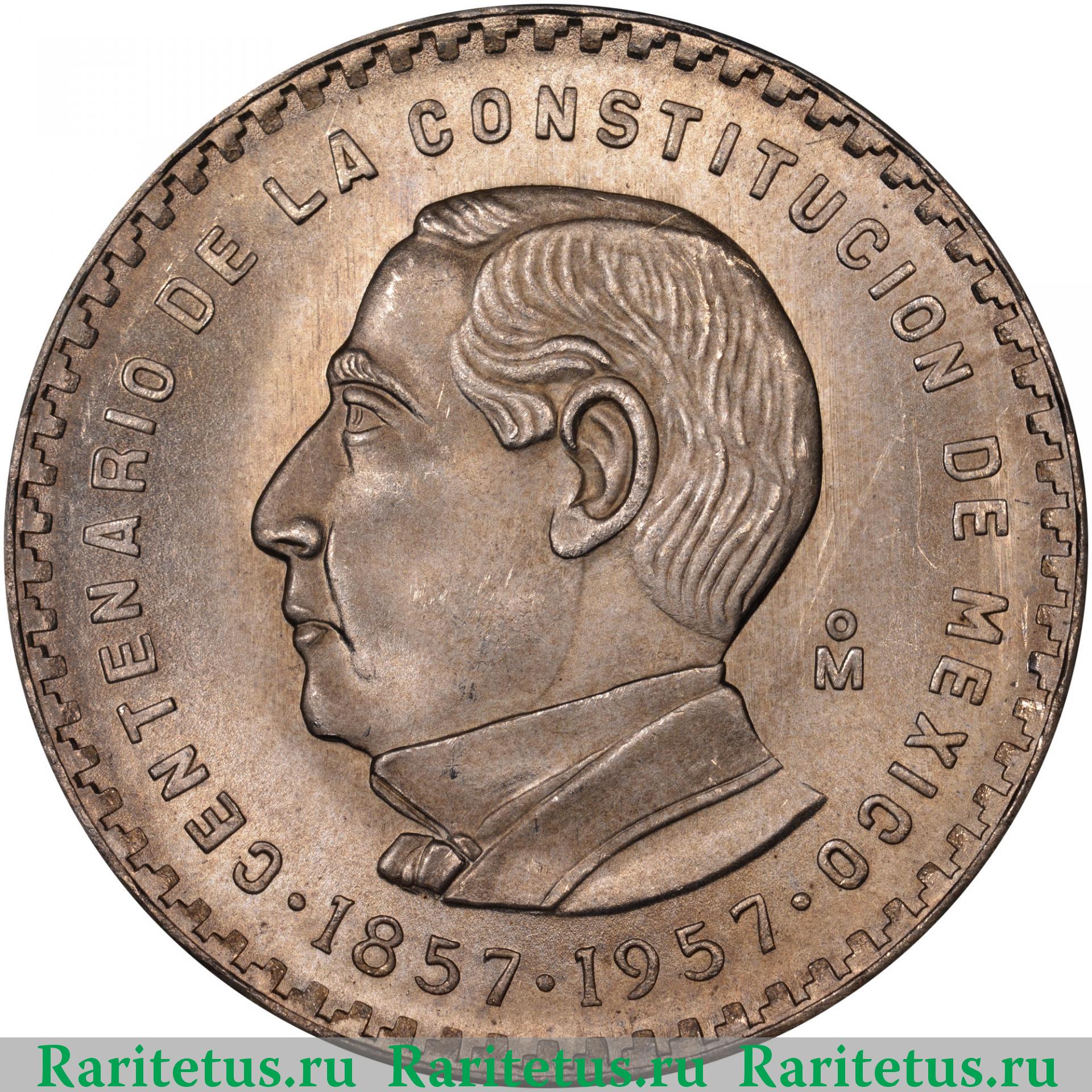1 песо (peso) 1957 100 лет Конституции Мексика