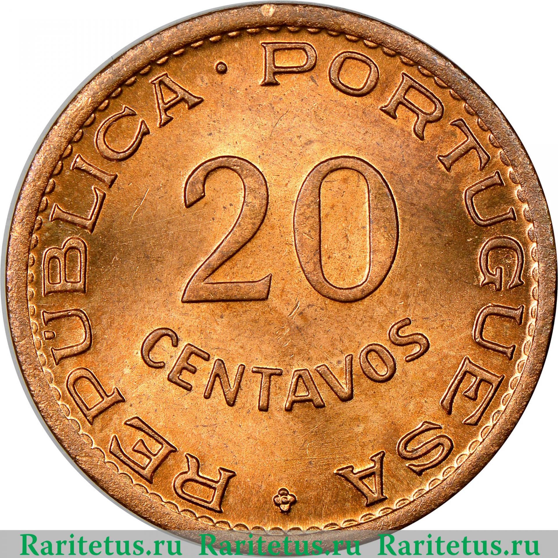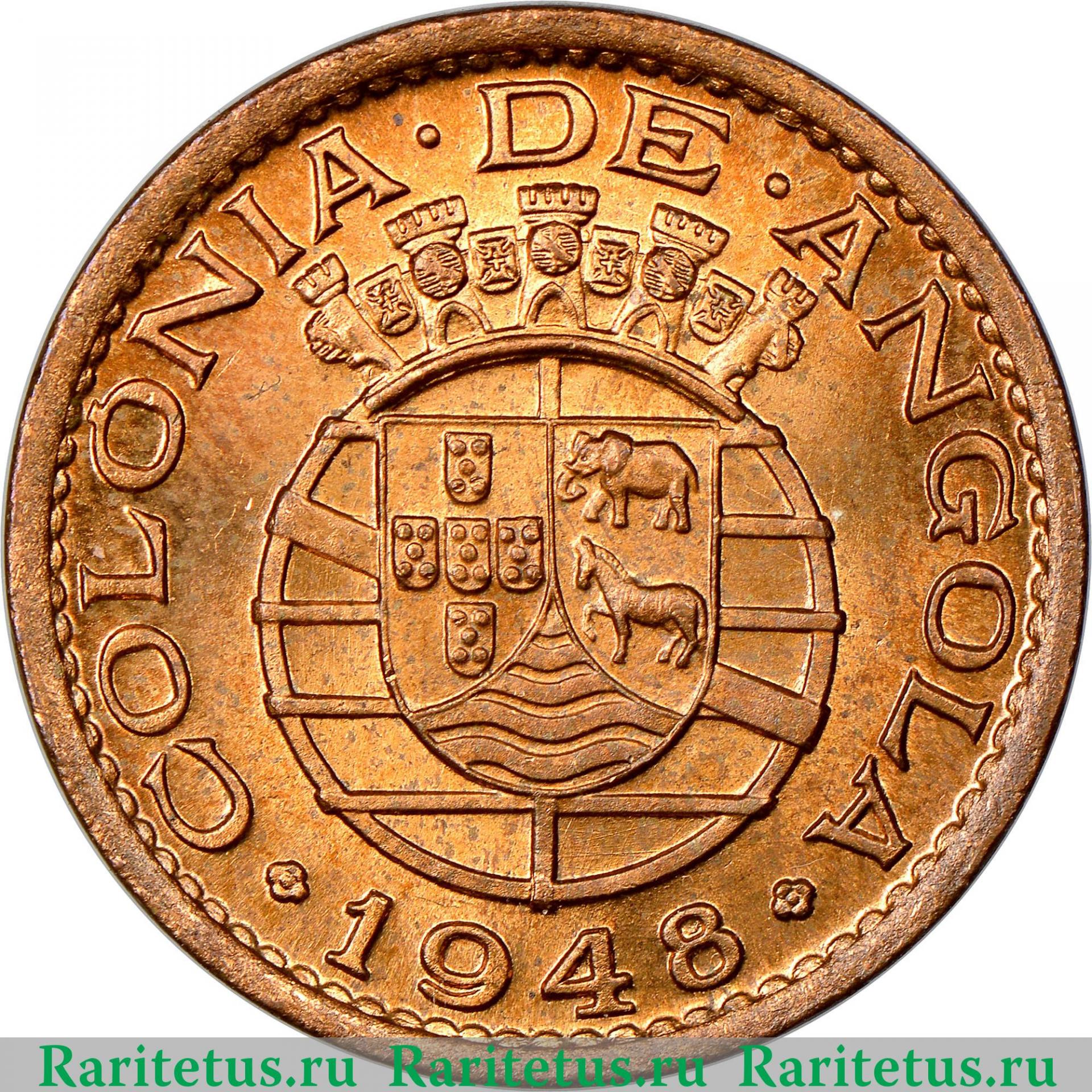Аверс монеты 20 сентаво (centavos) 1948 года Ангола