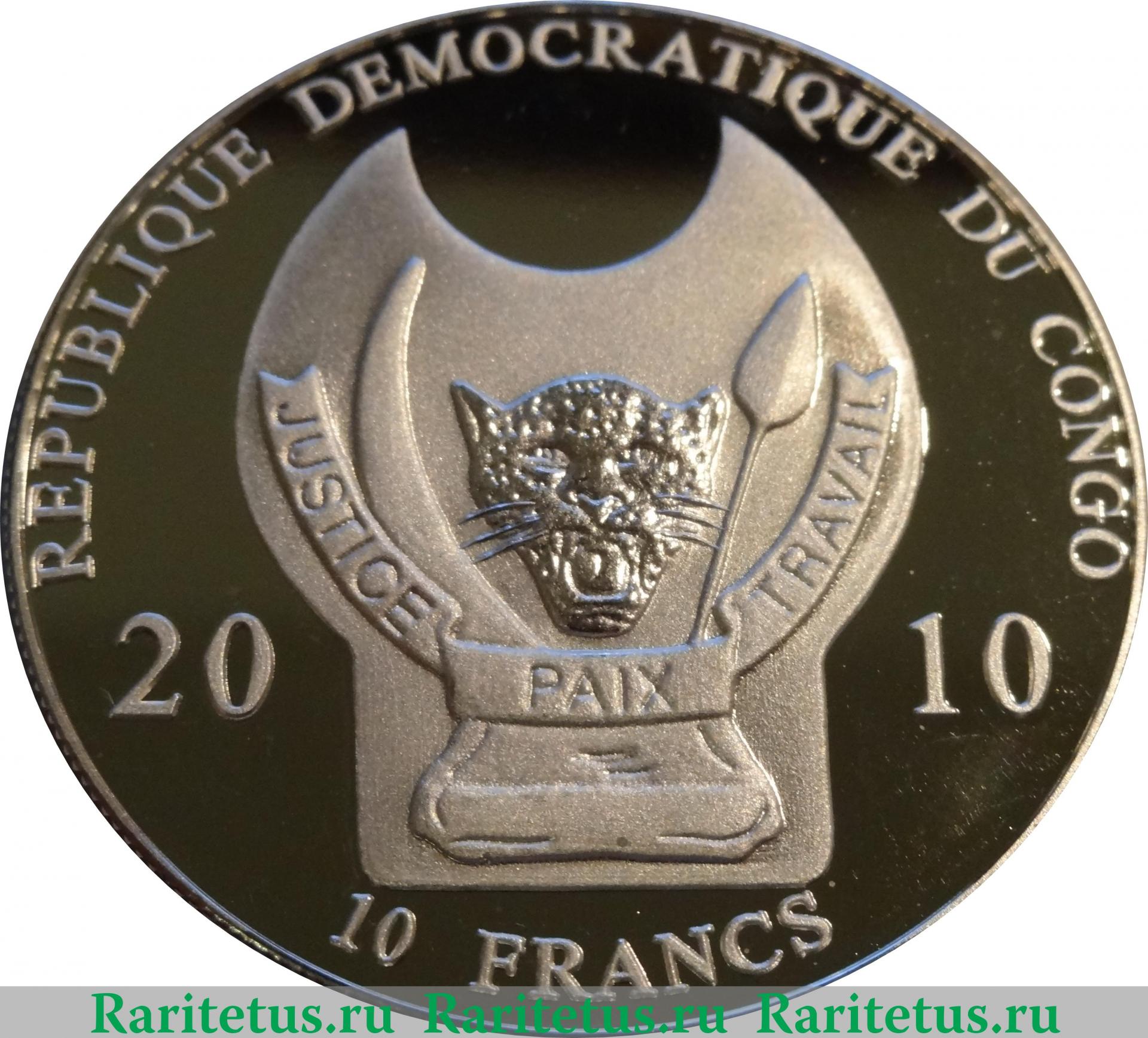 Аверс монеты 10 франков 2009-2010 годов Конго - ДРК