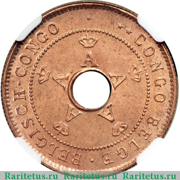 Аверс монеты 2 сантима (centimes) 1919 года Бельгийское Конго