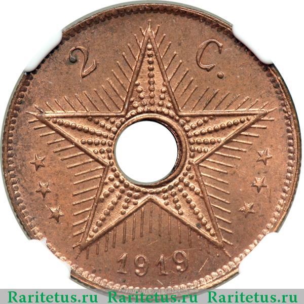 '2 сантима (centimes) 1919 Бельгийское Конго'