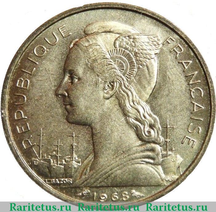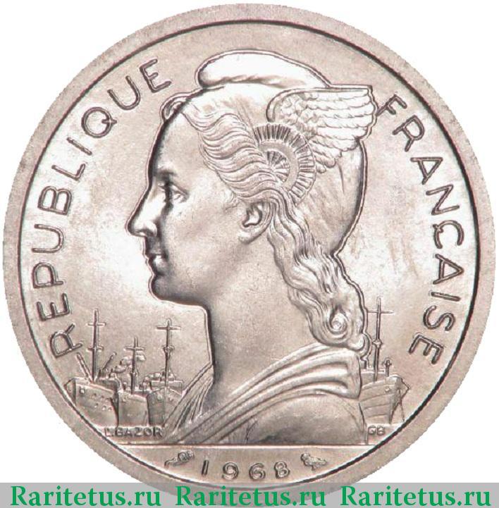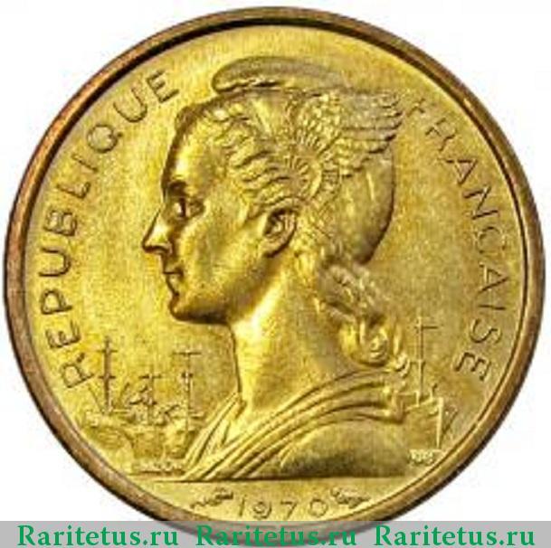 Франк CFA. После перехода к специальным выпускам для этой территории основными стали монеты с номиналами, характерными для всей зоны использования франка CFA. Это позволило обеспечить экономическую связь региона с другими французскими колониями.