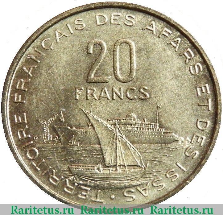 Французская Территория Афар и Исса образовалась в 1967 году после переименования Французского Сомали. Сразу после этого была начата подготовка к выпуску собственных монет, которые могли бы представлять регион на международном уровне и стать символом его культурной идентичности. Как и во многих других французских колониях, для этого региона была внедрена система франка, и чеканка монет велась под контролем французских властей.