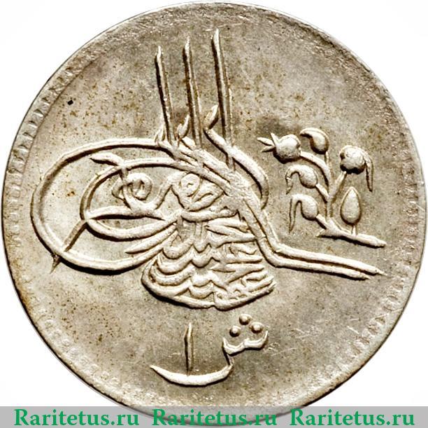 В центре изображена тугра султана Османской империи Абдул-Хамида II. Справа - цветок. Снизу - надпись 1 кирш на османском языке: "۱ش". По краям канта расположены рельефные элементы в виде зубцов.