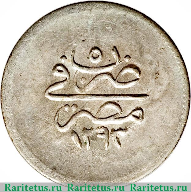 В центре - надпись в 3 строки на османском языке: "ضرب في مصر", что переводится, как: "ВЫПУЩЕНО В ЕГИПТЕ". Снизу - год восшествия на престол султана Османской Империи Абдул-Хамида II индо-арабскими цифрами: "١٢٩٣" - 1293-й по исламскому календарю или 1876-й по григорианскому. Сверху - цифра: "٥" - "5", означающая 5-ый год правления или 1880-й. По краям канта расположены рельефные элементы в виде зубцов.