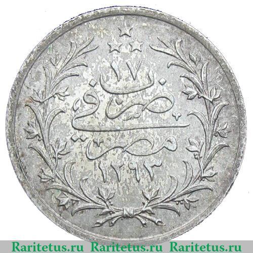 Сверху вдоль канта изображены 3 пятиконечные звёзды. В центре - надпись в 3 строки на османском языке: "ضرب في مصر", что переводится, как: "ВЫПУЩЕНО В ЕГИПТЕ". Снизу - год восшествия на престол султана Османской Империи Абдул-Хамида II индо-арабскими цифрами: "١٢٩٣" - 1293-й по исламскому календарю или 1876-й по григорианскому. Сверху - число: "۱۷" - "17", означающая 17-ый год правления или 1892-й. По краям канта расположены рельефные элементы в виде зубцов.