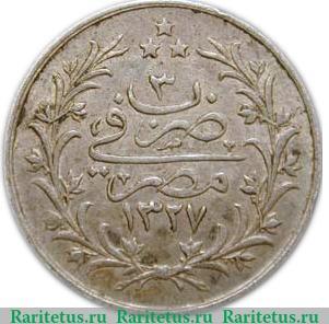 Сверху вдоль канта изображены 3 пятиконечные звёзды. В центре - надпись в 3 строки на османском языке: "ضرب في مصر", что переводится, как: "ВЫПУЩЕНО В ЕГИПТЕ". Снизу - год восшествия на престол султана Османской Империи Абдул-Хамида II индо-арабскими цифрами: "۱۳۲۷" - 1327-й по исламскому календарю или 1909-й по григорианскому. Сверху - число: "۳" - "3", означающая 3-ий год правления или 1911-й. По краям канта расположены рельефные элементы в виде зубцов.