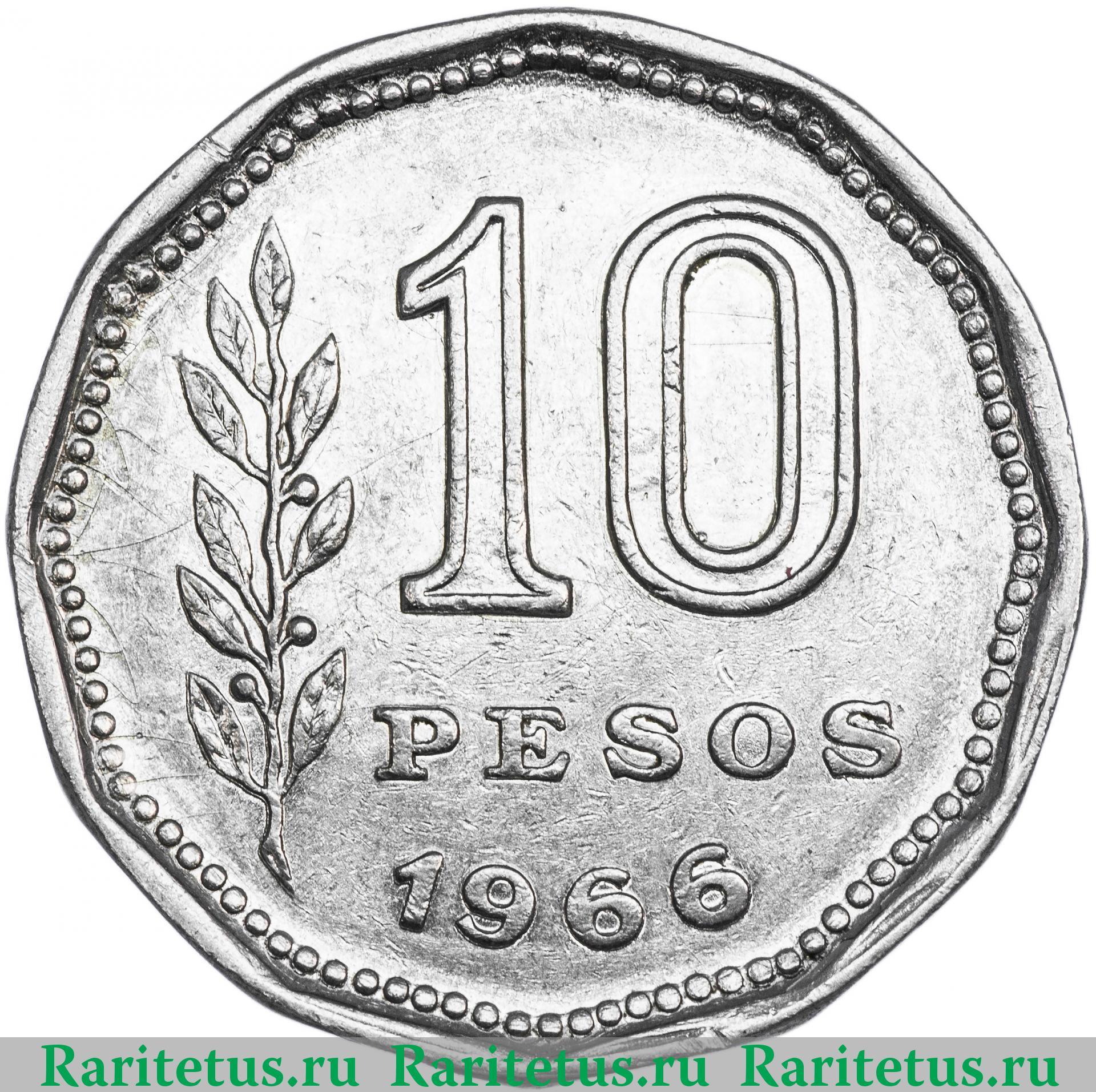'10 песо (pesos) 1966 регулярный чекан Аргентина'