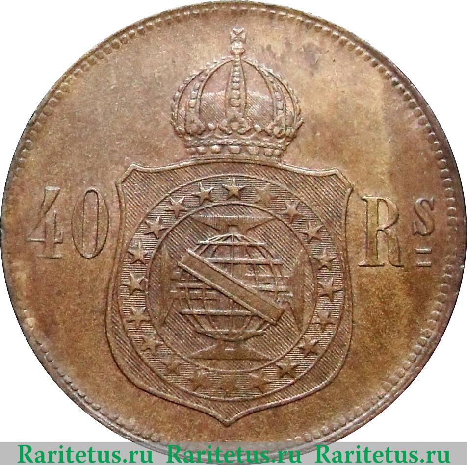 Аверс монеты 40 рейсов 1873-1880 годов Бразилия
