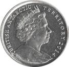 Слева, сверху и справа вдоль канта надпись «BRITISH ANTARCTIC TERRITORY 2013», которая переводится с английского как «Британские Антарктические территории» и год выпуска 2014. В центре профильный портрет королевы Елизаветы II вправо.