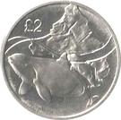 В центре изображение двух косаток на фоне айсберга. Справа от них аббревиатура: «РM», знак монетного двора в Тэдворсе (Pobjoy Mint). Над ними надпись на англ. яз.: «£2» - два фунта.
