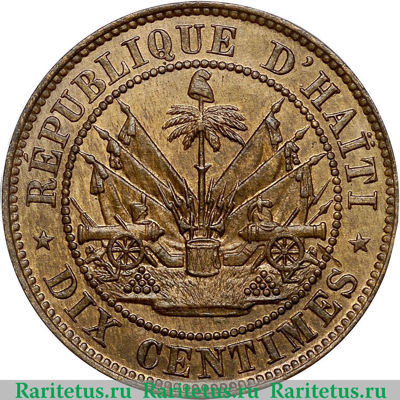 Реверс монеты 10 сантимов (centimes) 1863 года Гаити