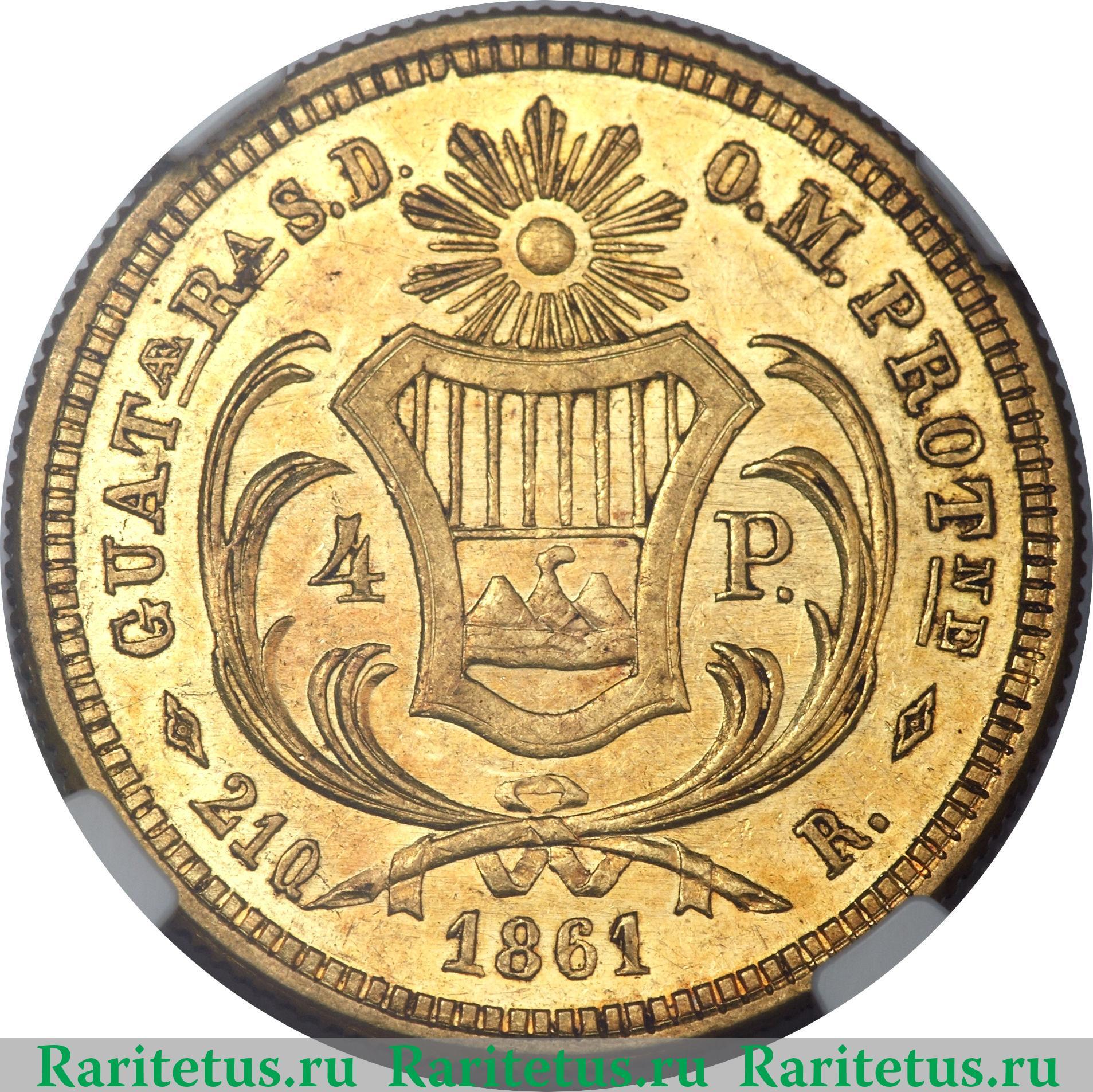 4 песо, 1861 год, Гватемала, регулярный выпуск