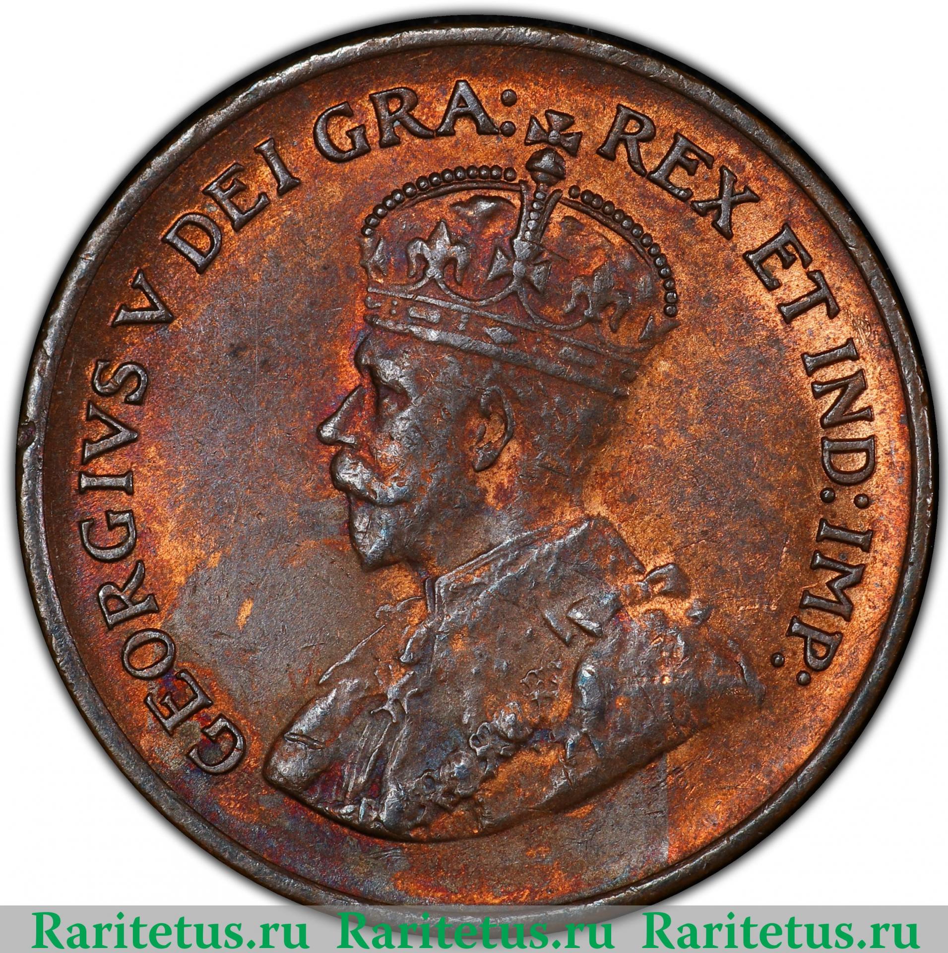 По окружности канта — рельефные элементы в виде точек. Слева вдоль канта надписи на латыни «:GEORGIVS V DEI GRA:», «REX ET IND: IMP:», переводятся как «Георг V король и император Индии».
