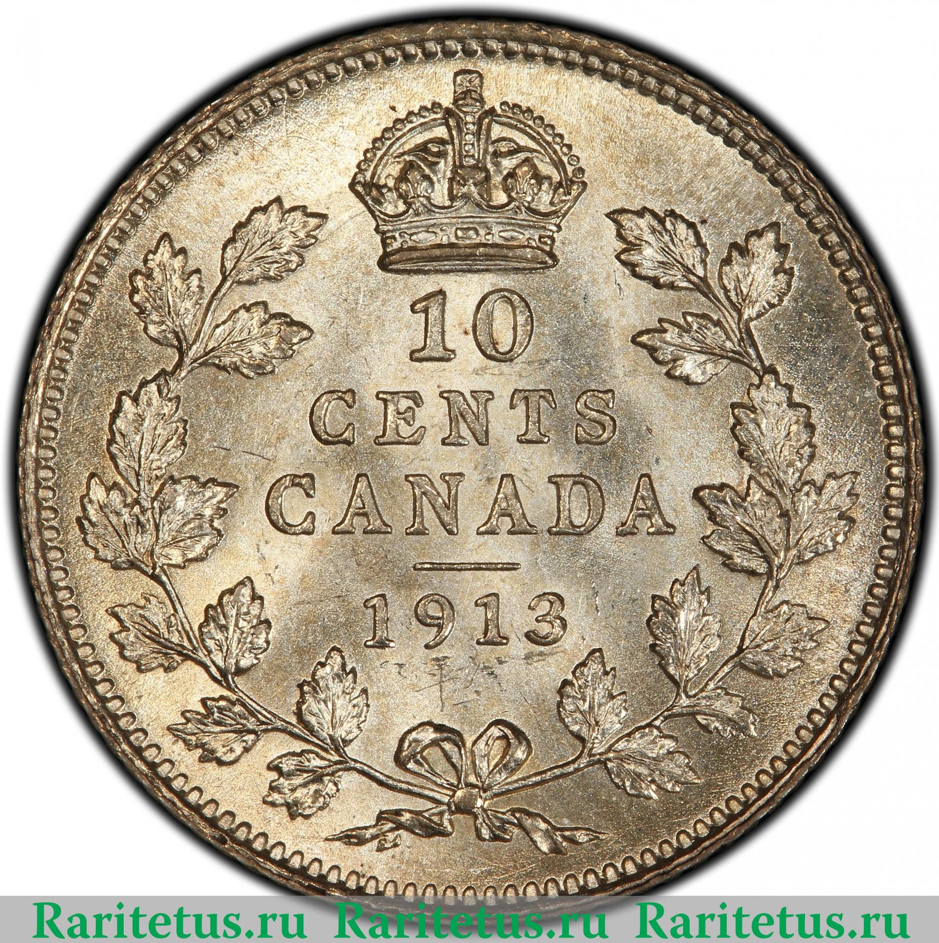 Реверс монеты 10 центов (cents) 1913 года Канада
