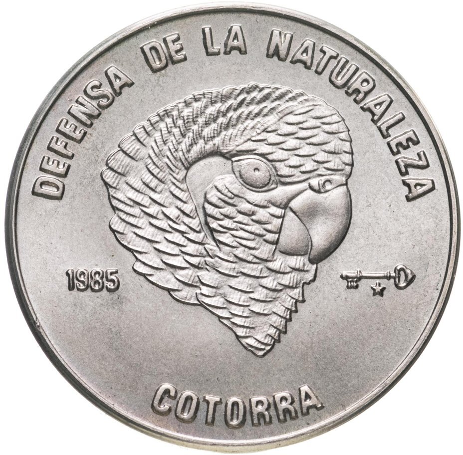 Аверс монеты 1 песо (peso) 1985 года попугай Куба